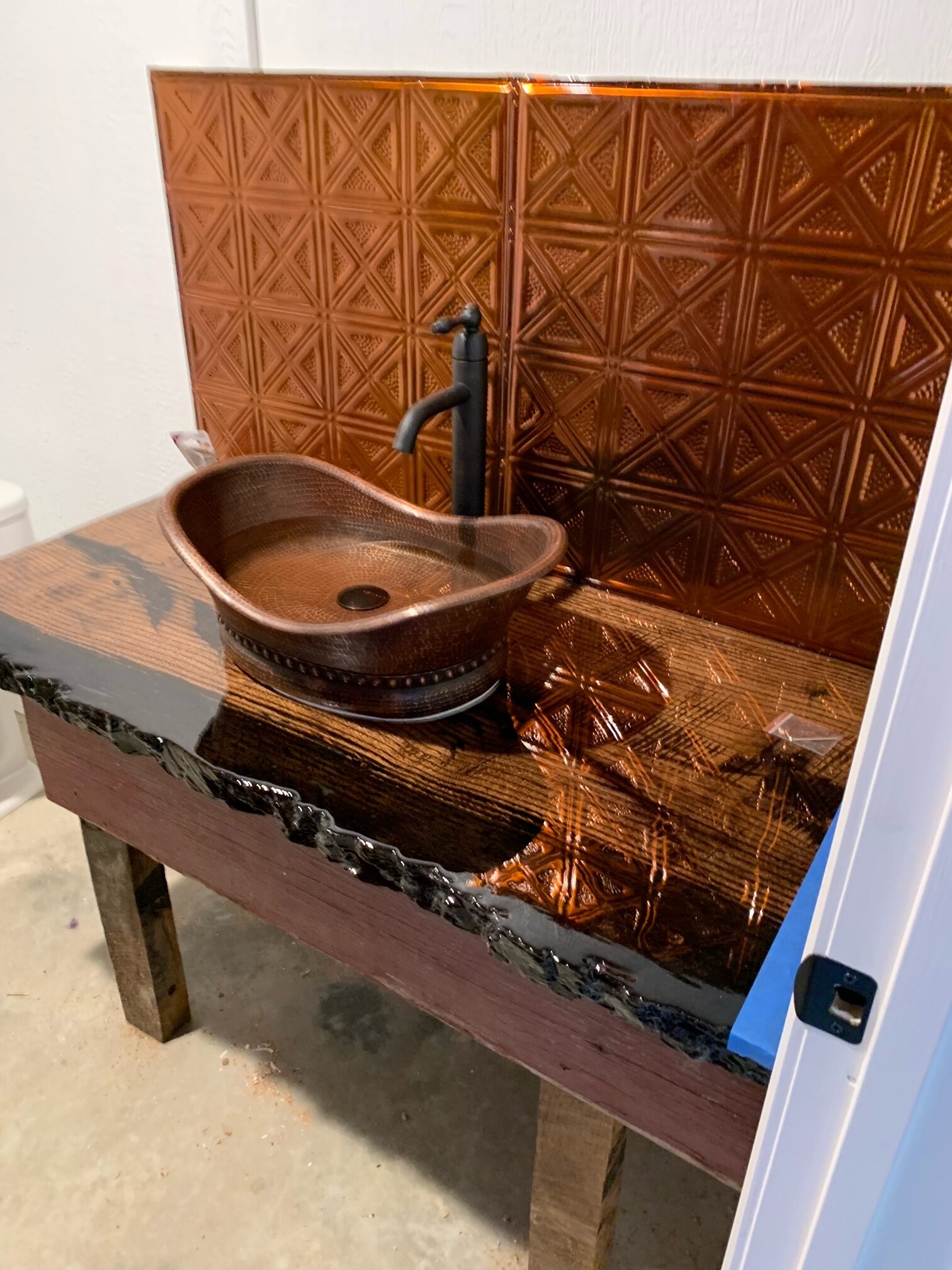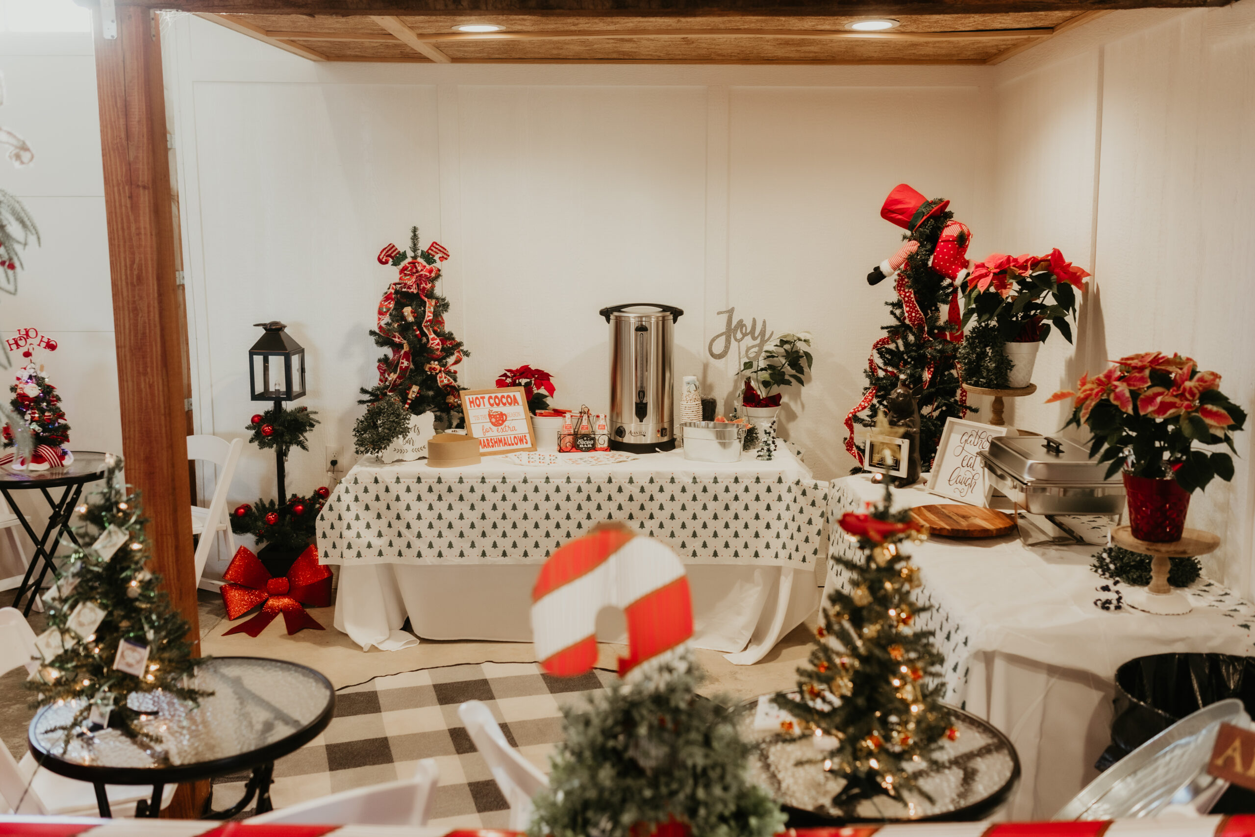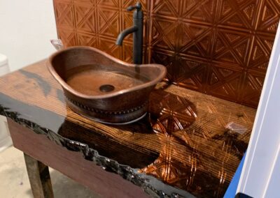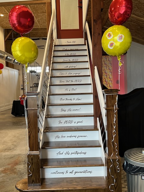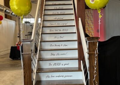 The 16 foot glass commercial door allows the outside to come in and floods the main floor with light during the day and sparkling stars at night. Our signature staircase is a cornerstone element on the main level. The expansive event space features, state of the art heating and air conditioning. Two custom built bathrooms by master craftsman, Ron Dykes were constructed with live edge wood believed to be from a 100 year Bonner Springs tree. The old world tin ceiling adds to the character of Big Red. Our industrial prep kitchen works well for all size catering companies and provides designated parking with their own private entrance. There is also parking galore for you and your guests.